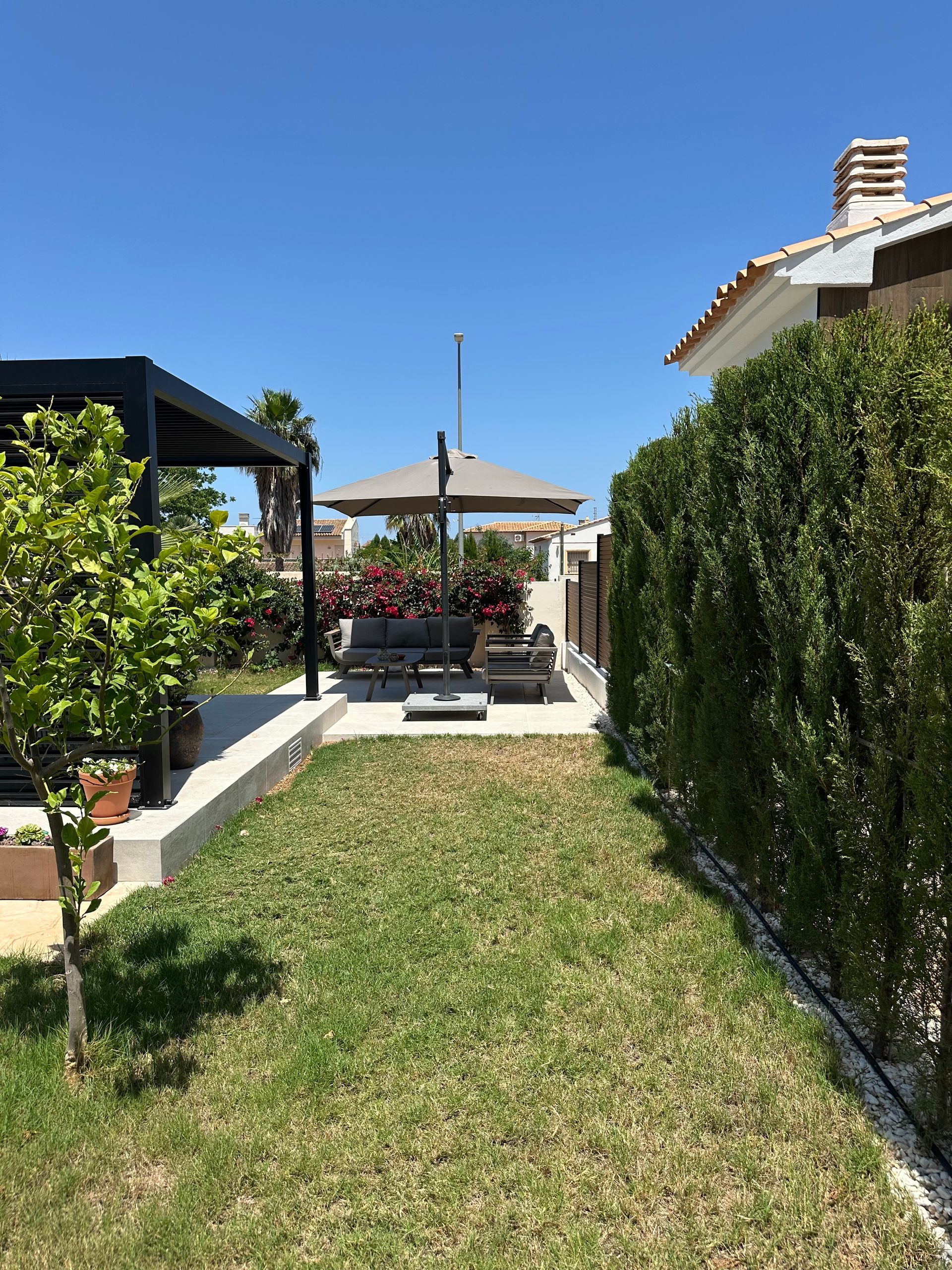 Geniet het hele jaar door van de Spaanse zon en verblijf in deze moderne vrijstaande woning met rondom een tuin. De woning ligt centraal in een rustige woonwijk op loopafstand van strand, het centrum van Denia en supermarkten.